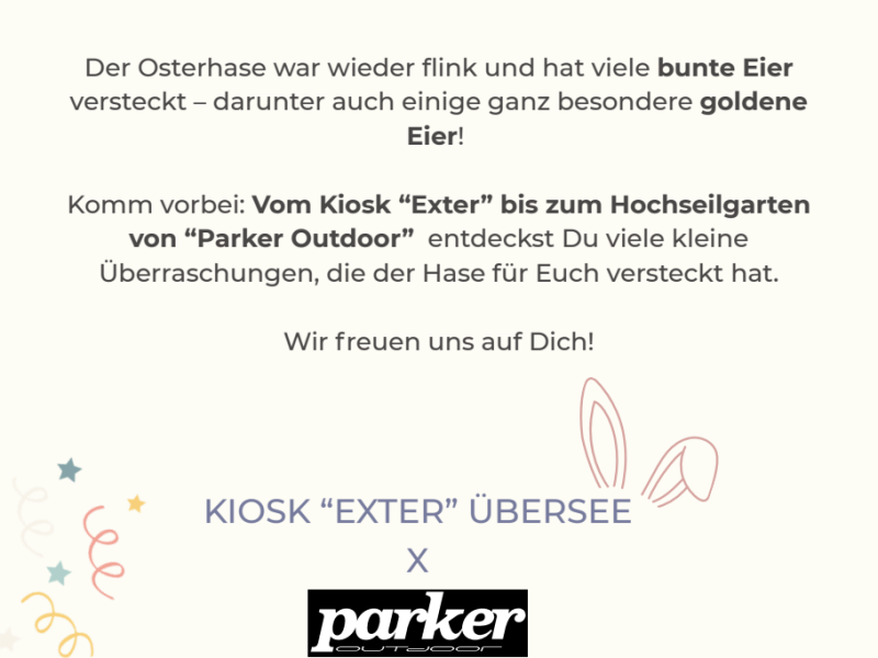 Komm vorbei: Vom Kiosk "Exter" bis zum Hochseilgarten von "Parker Outdoor" entdeckst du viele kleine Überraschungen, die der Hase für Euch versteckt hat.