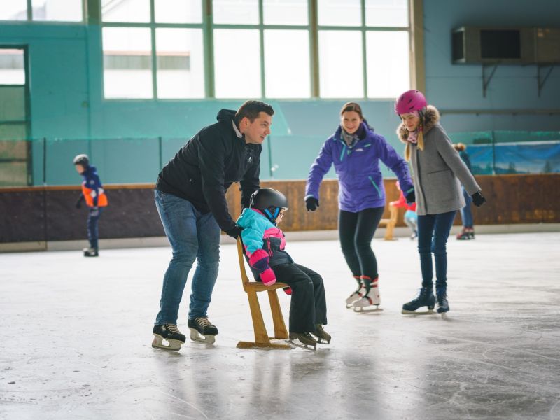 Schlittschuhe und Eisstöcke können vor Ort ausgeliehen werden. Zum Eisstockschießen bitte im Vorhinein anmelden.