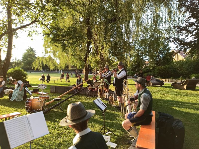 Es spielt die Grassauer Blasmusi. Mit Getränkeverkauf. Bei schlechtem Wetter findet das Konzert im Hefterstadel statt.