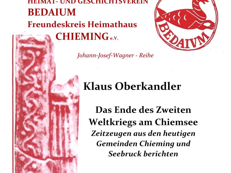 In seinem Vortrag über das Ende des Zweiten Weltkriegs in den heutigen Gemeinden Seeon-Seebruck und Chieming gibt der Journalist Klaus Oberkandler in der Aula des Gymnasiums Schloss Ising Berichte von Zeitzeugen wieder. Neben den im Sommer 1945 von den Ortsgeistlichen verfassten Schilderungen der letzten Kriegstage erzählt er über Begegnungen mit Menschen, die ihm in den letzten Jahren ihre Erinnerungen aus jener Zeit geschildert haben. Aus Seebruck berichtete ihm unter anderem Franz Kaltner über das damals Erlebte, aus Chieming Joseph Wiesholler und aus dem Weiler Käs Peter Freiwang.